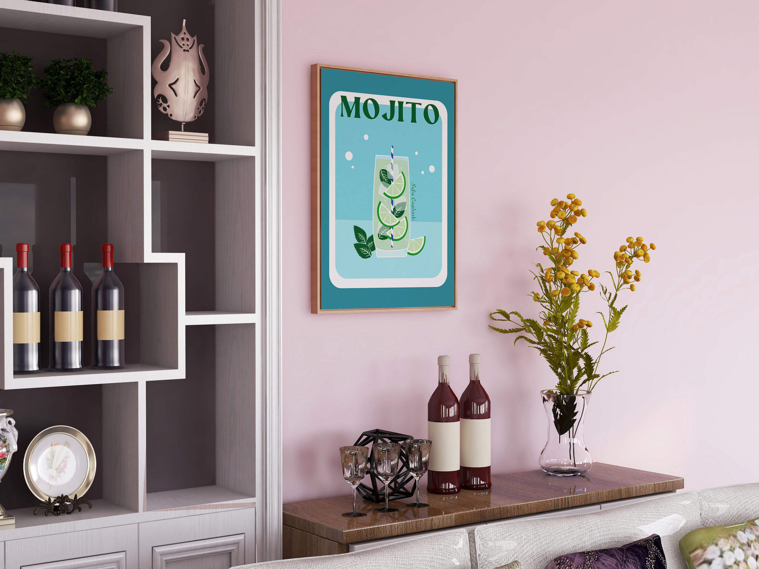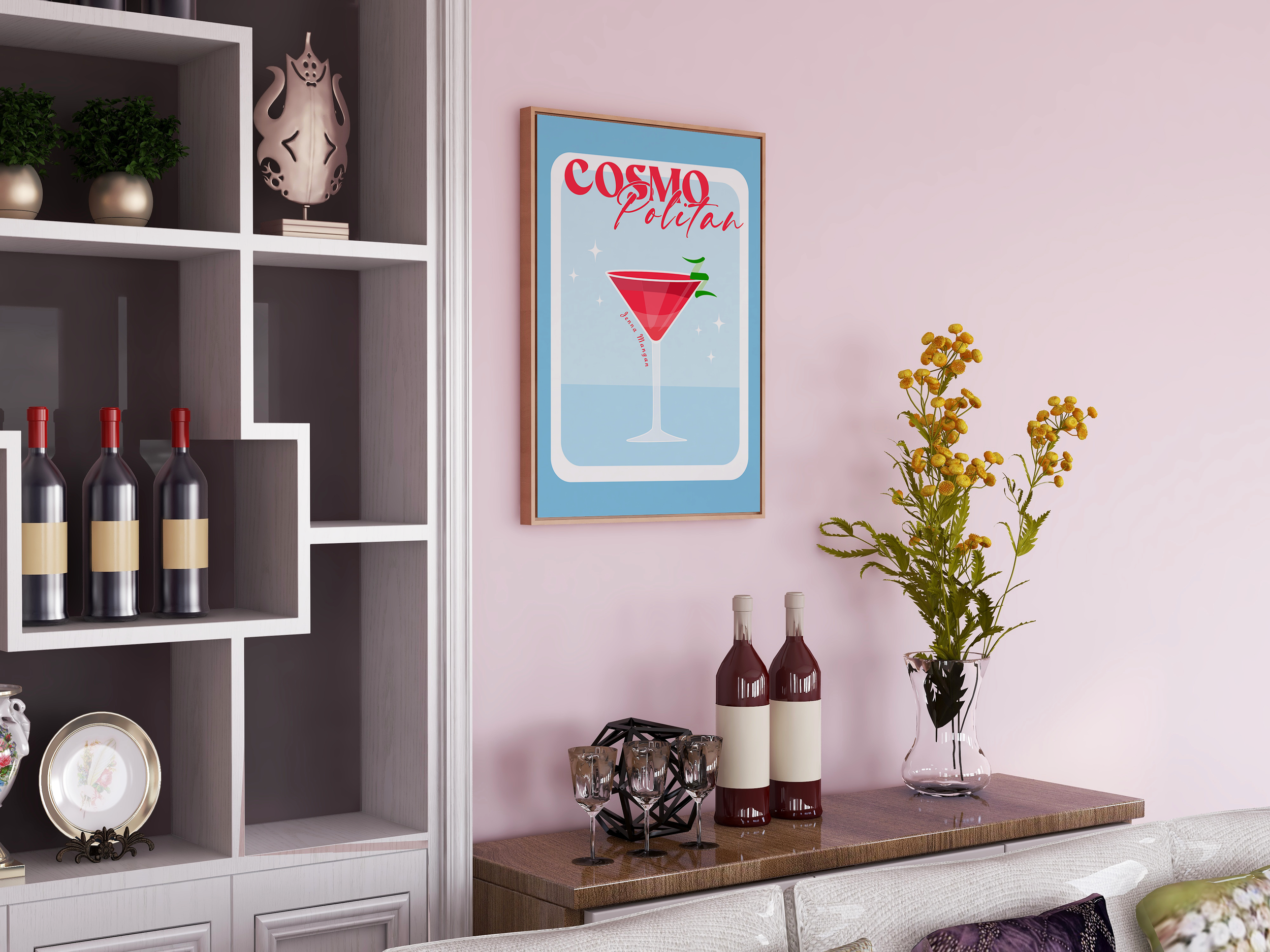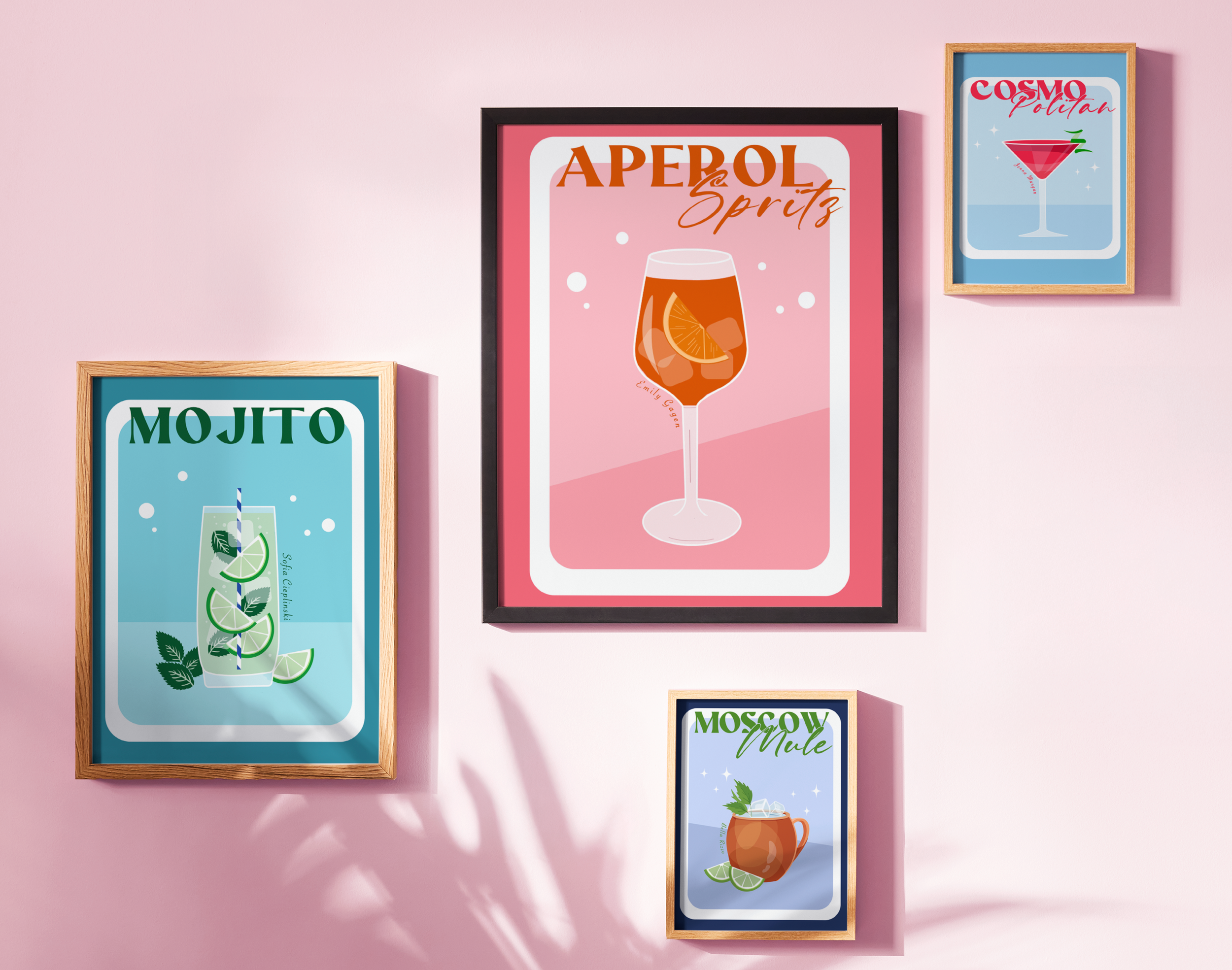 My first freelance project began when a group of clients requested personalized posters to decorate their apartment. Each print was designed around a vibrant color palette, expressive typography, and playful compositional elements, allowing me to balance aesthetic appeal with each client’s individual style.