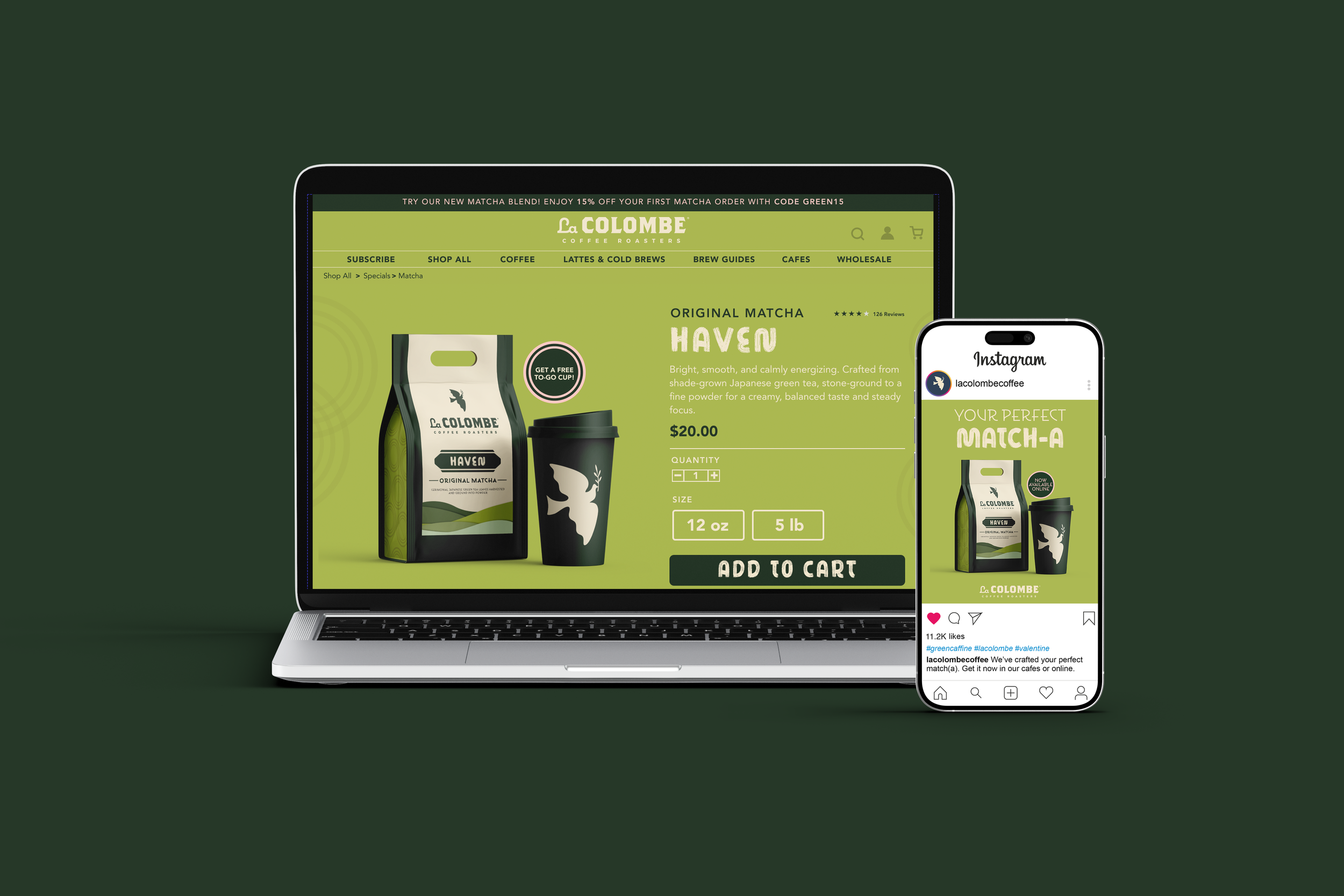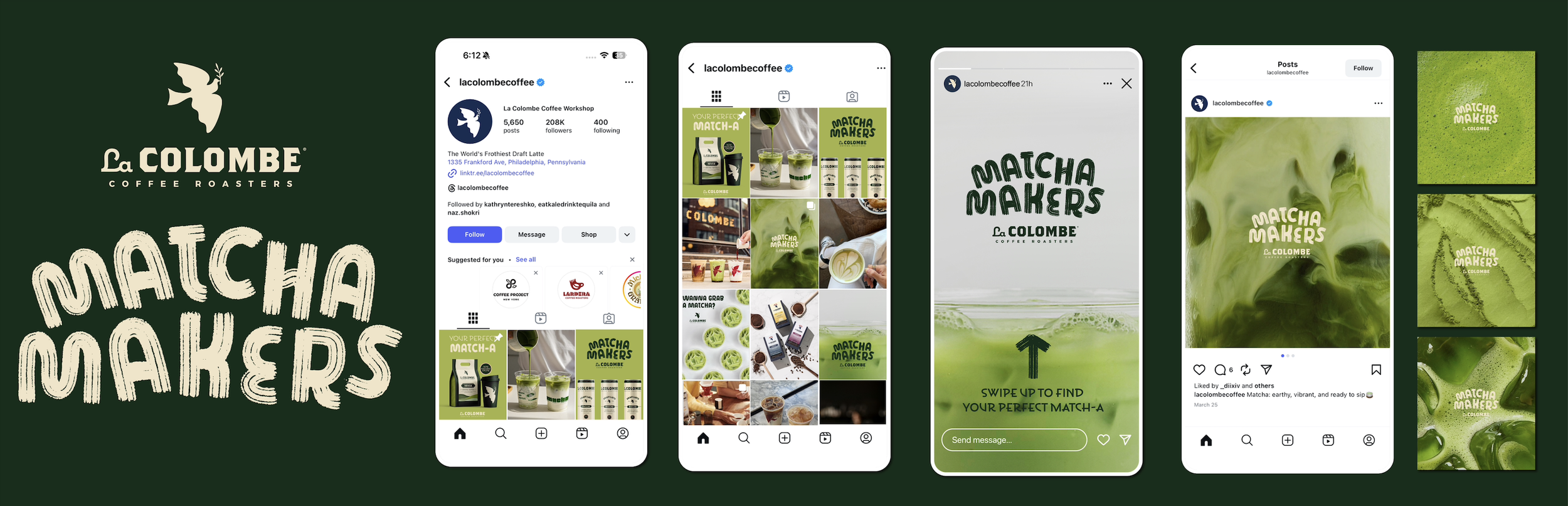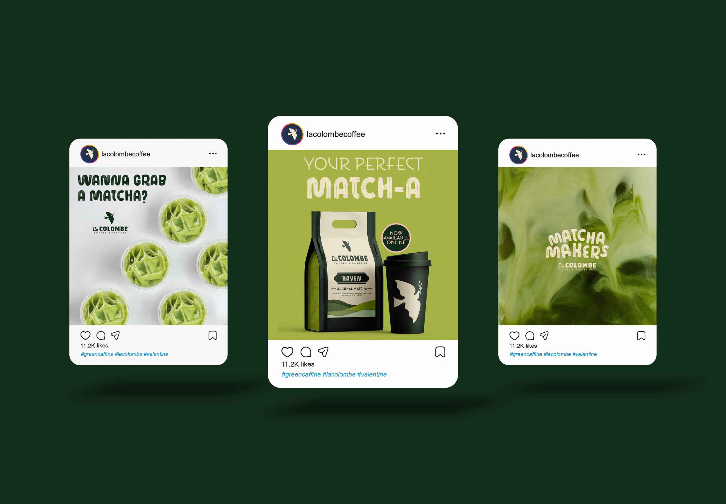 A collection of matcha-inspired posts created to launch this campaign on La Colombe’s Instagram platform. Featuring my own photography and packaging designs, these posts are crafted to drive interest and encourage customers to purchase La Colombe’s matcha in stores or online.