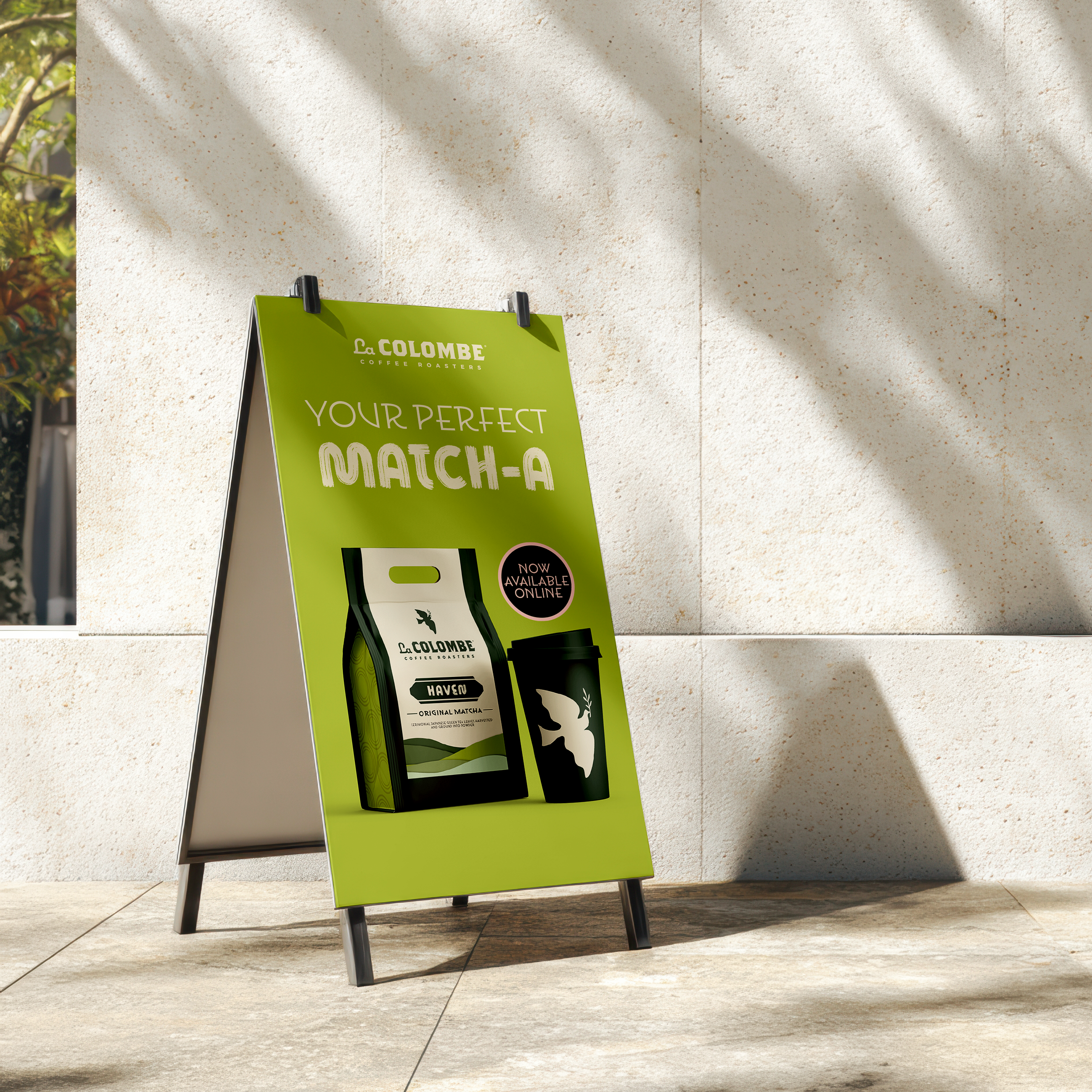 I designed Matcha Base packaging inspired by La Colombe’s existing system and proposed a matcha-themed pop-up or café takeover in Philadelphia. The spatial mockup shows how this immersive activation could come to life.