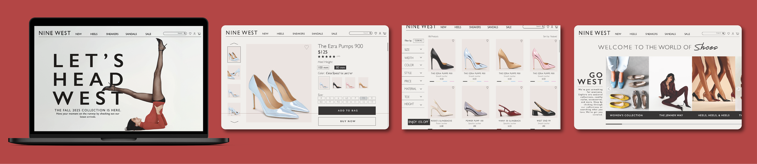 As someone who has always admired Nine West’s affordability and style, I wanted to reimagine their website with a more elevated, modern aesthetic that better reflects the brand’s potential. I focused on refining layout hierarchy, improving navigation, and curating imagery that enhances the sophistication of the online shopping experience.